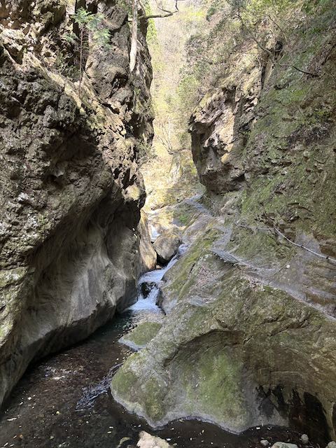 北秋川支流の神戸川上流に位置するこの場所は、高さ約100m、幅約140mもの絶壁がそびえ立つ、まさに東京都が誇る秘境スポットです。