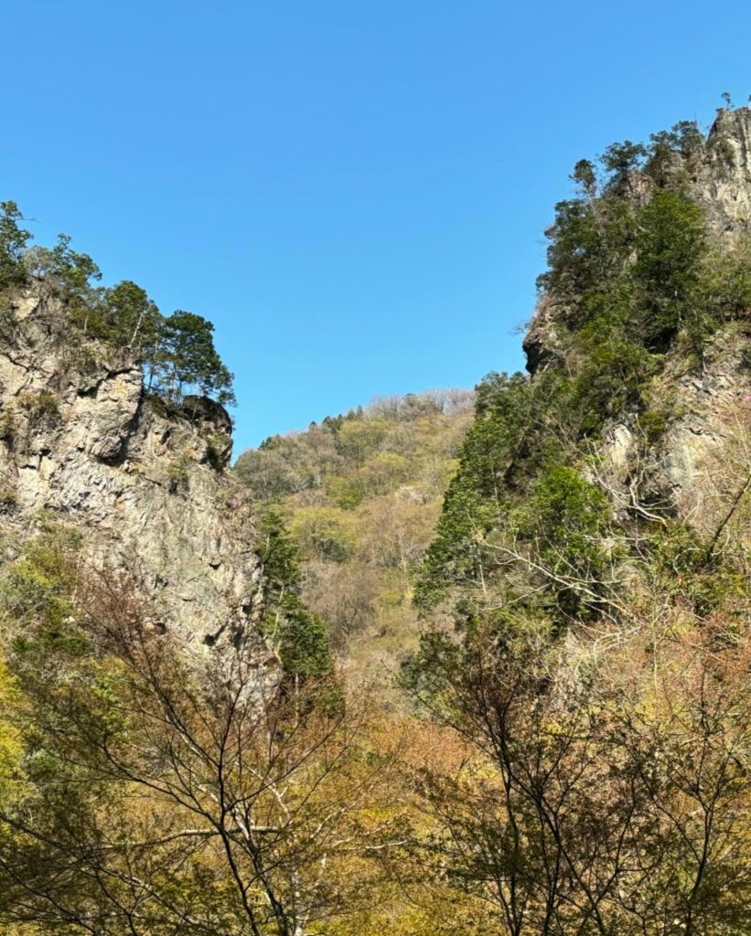 そびえ立つ岩壁は圧巻で、まるで異世界の門のよう。東京都の天然記念物にも指定されており、古くから「神様の通り道」と伝えられるパワースポットでもあります。