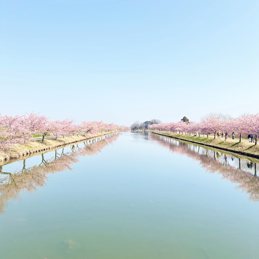 少し行きづらい場所ではありますが、そのぶん到着したときの嬉しさもひとしおでした。水路沿いにはのどかな景色が広がり、観光地らしい賑わいとは違う、静かな春の空気が流れていました。