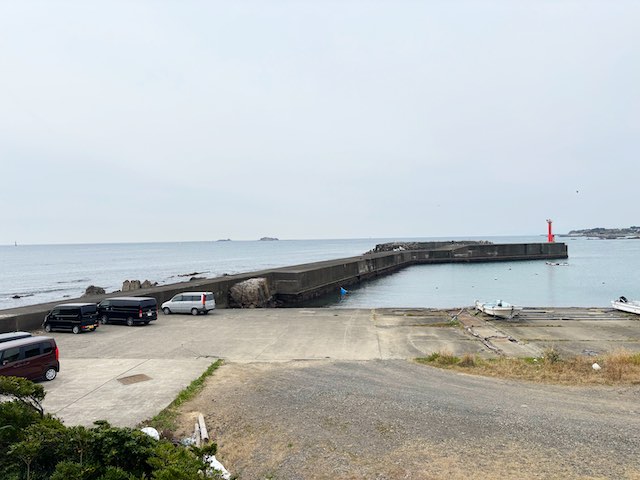 車の場合は専用駐車場はありませんが、片田漁港小公園の向かいにある未舗装のスペースに駐車し、灯台まで徒歩約15分です。