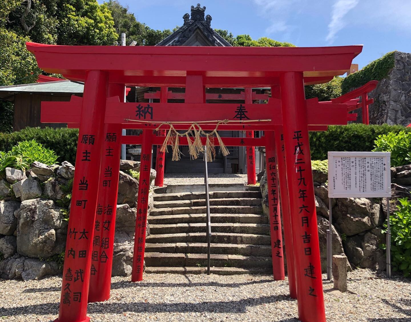 海のそばに佇む赤い鳥居──片田稲荷神社