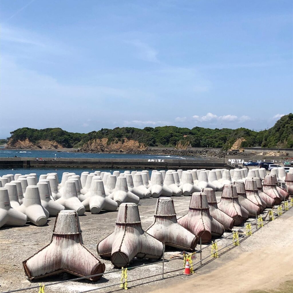 漁港のそばでは、テトラポッドを製作している光景にも出会いました。