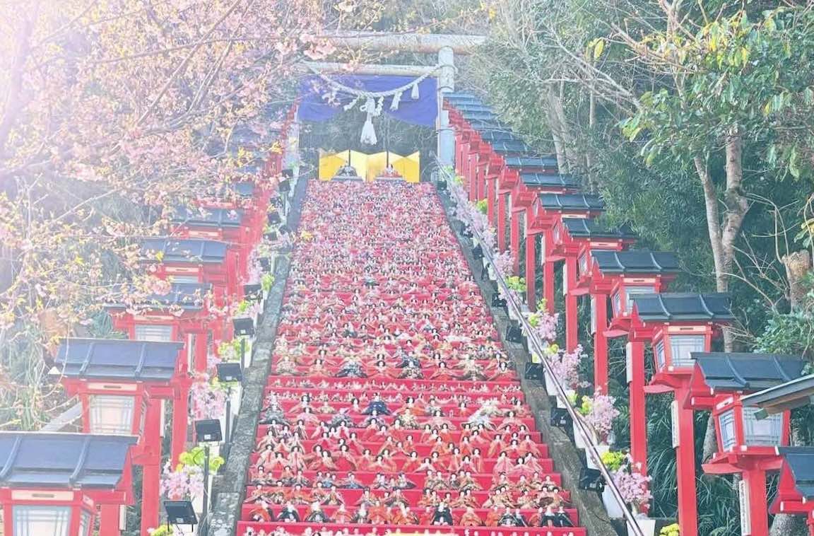 遠見岬神社の“石段びっしりの雛飾り”に圧倒