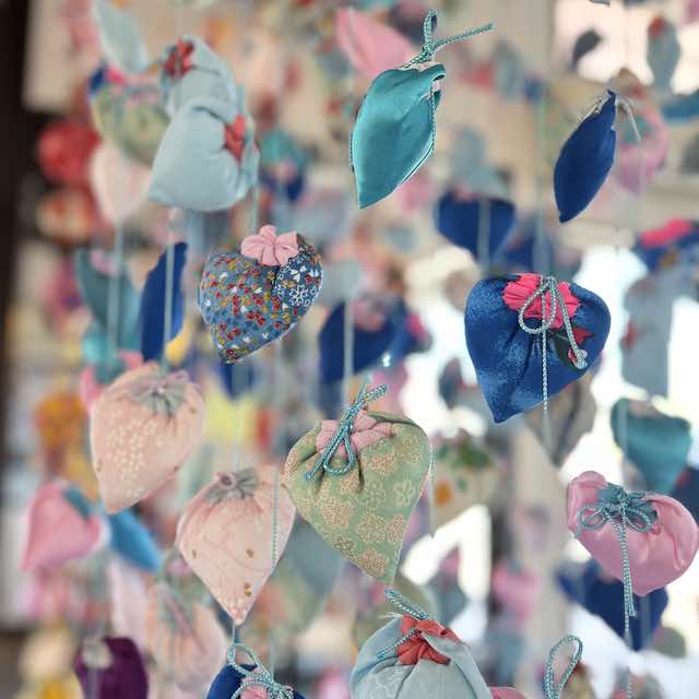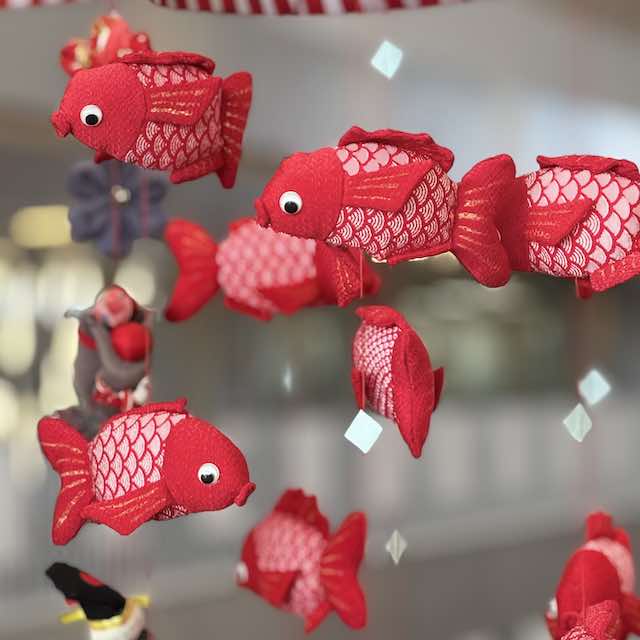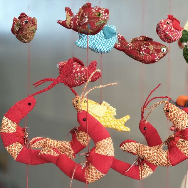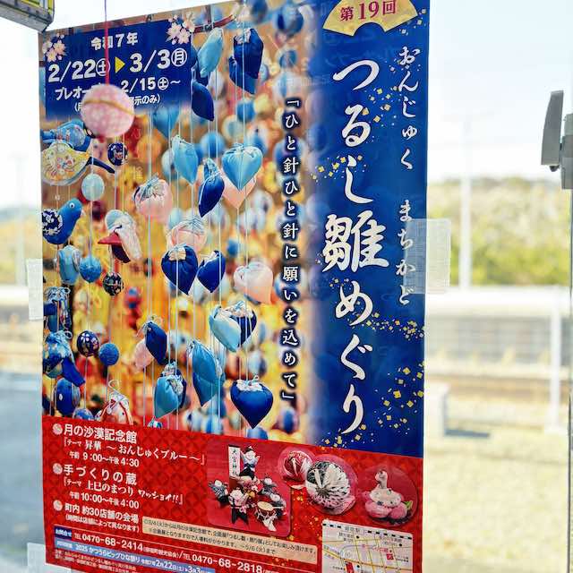 勝浦をひと通り満喫した後は電車で隣駅の御宿へ移動。ここでも「つるし雛めぐり」が開催されており、手作りの吊るし飾りが町のいたるところに飾られていました。