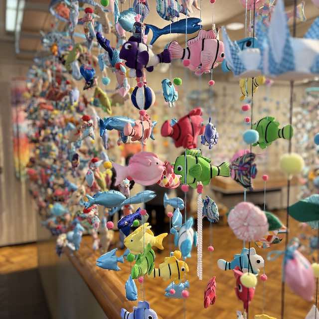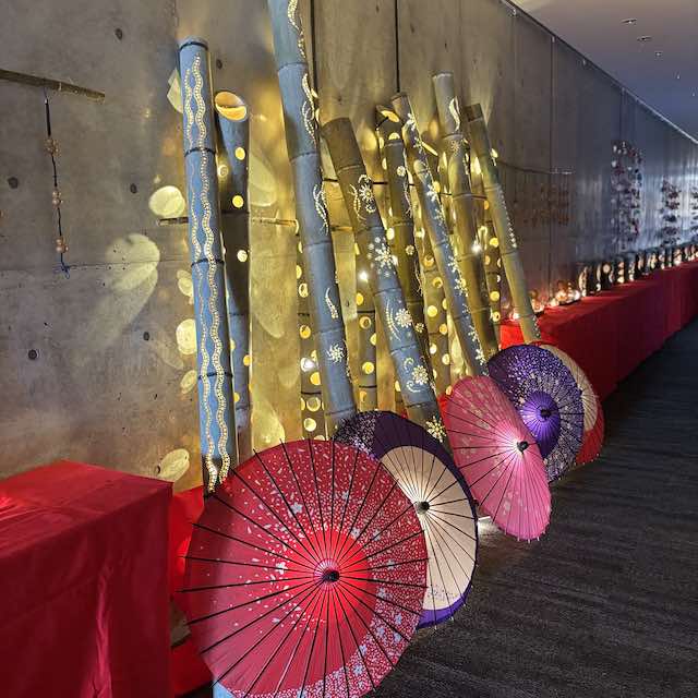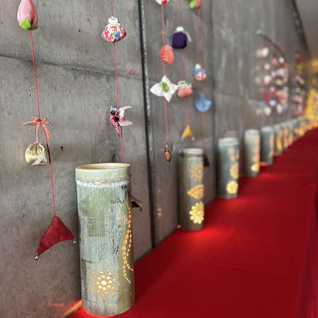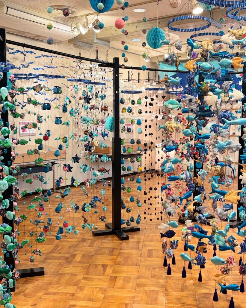 2025年のテーマは「昇華~おんじゅくブルー~」。御宿の青い海をイメージしたブルー系の吊るし飾りが中心で、爽やかで印象的な世界観が広がっていました。