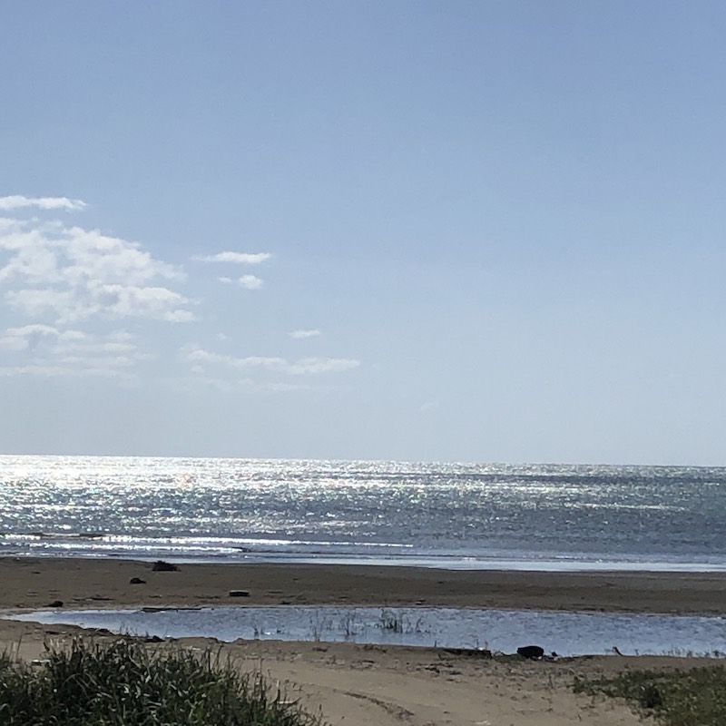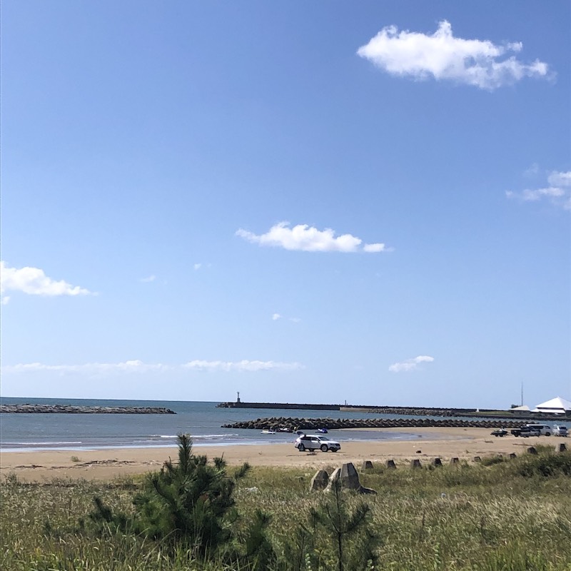 参拝を終えると、すぐ近くに海があることに気づき、砂浜の方へ歩いてみました。