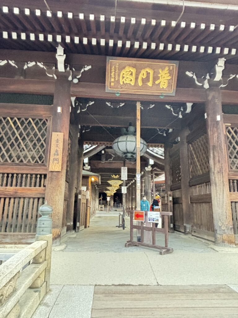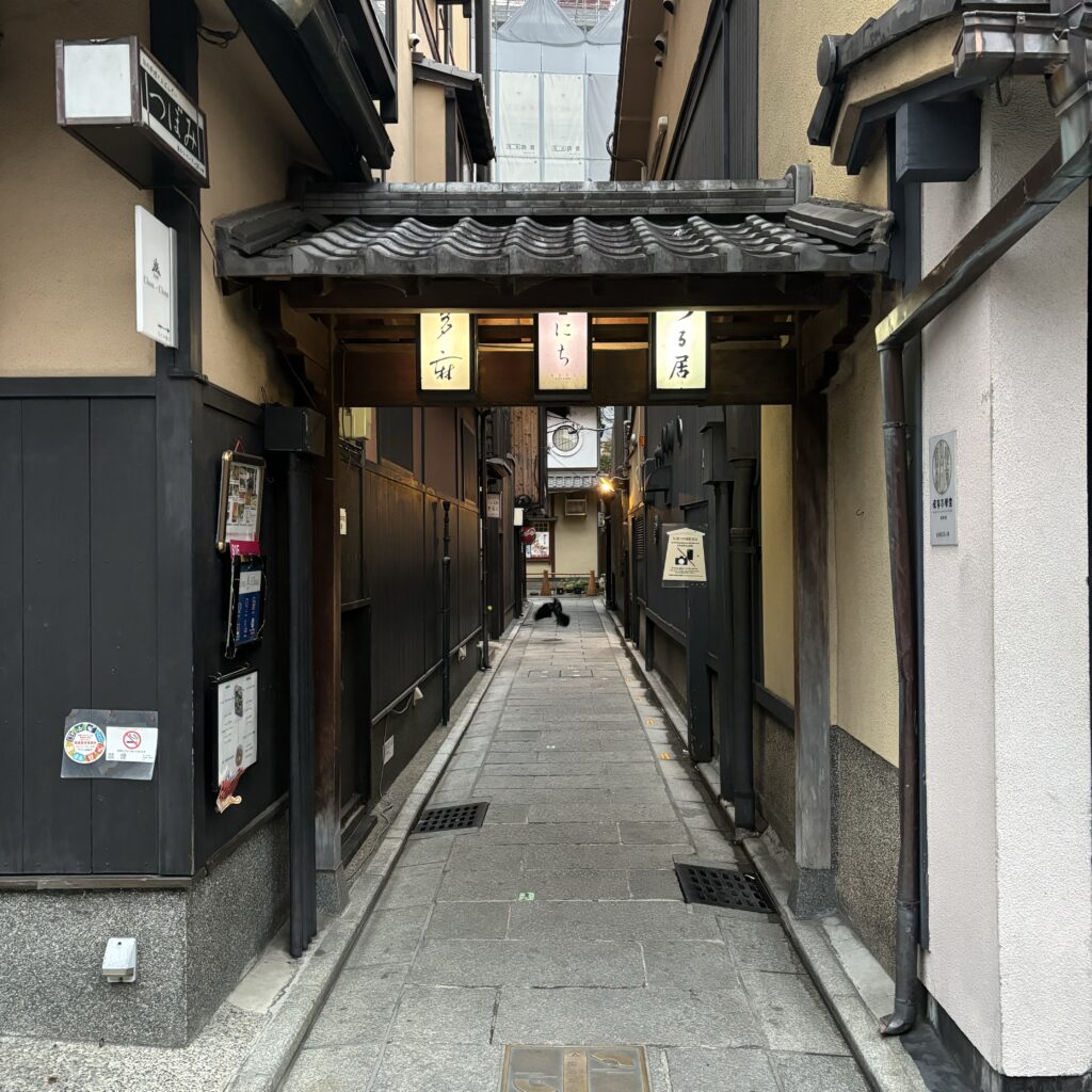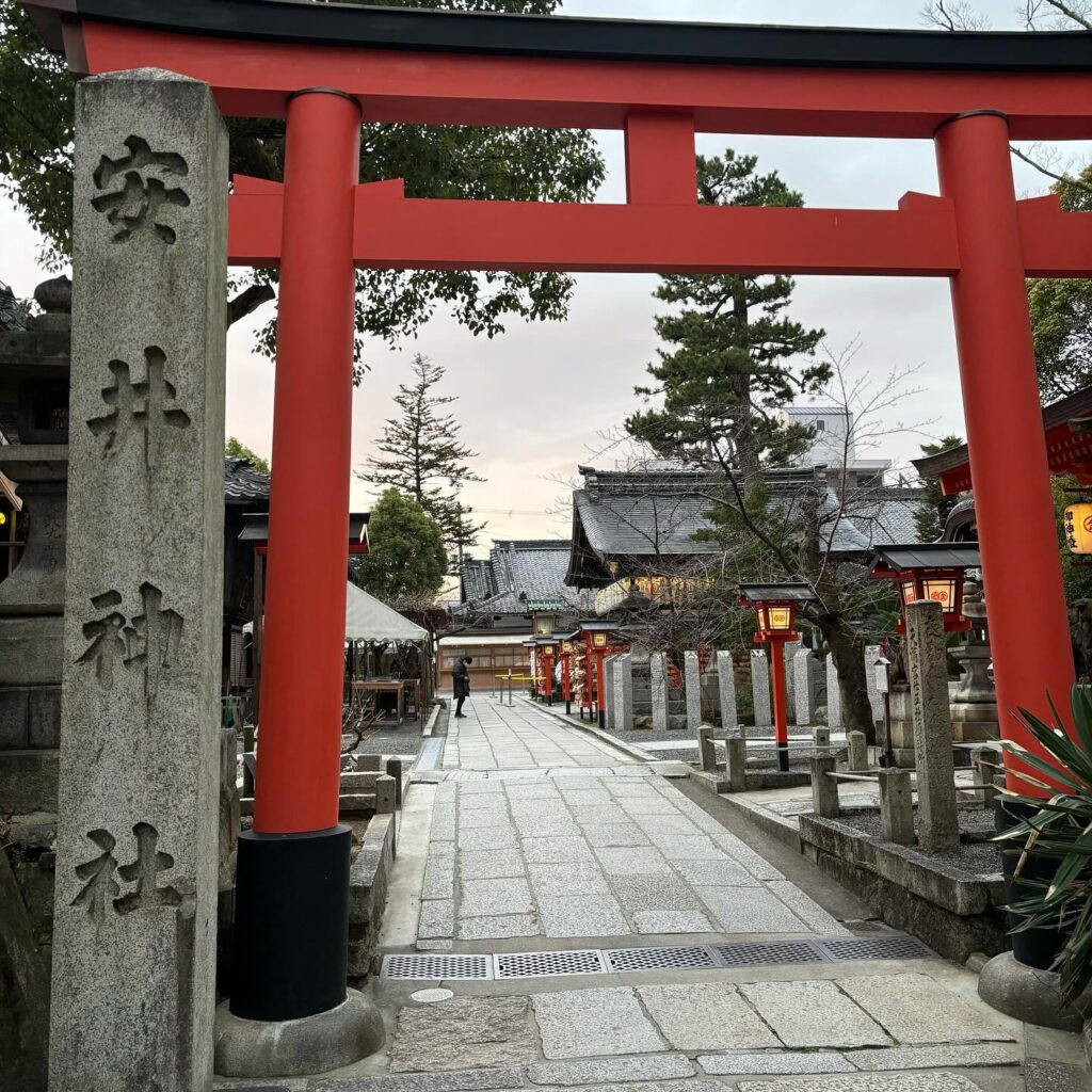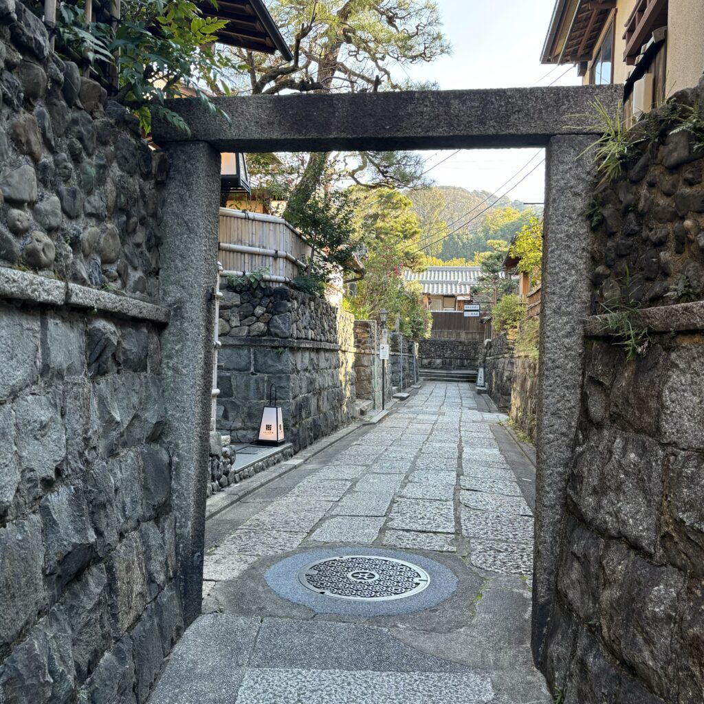 祇園の花見小路を通り抜け、まずは縁切り神社として知られる「安井金比羅宮」へ。まだ日も昇りきらない時間でしたが、境内にはすでにお参りする人の姿がちらほら。京都らしい清々しい朝の空気に包まれながら、静かに手を合わせました。