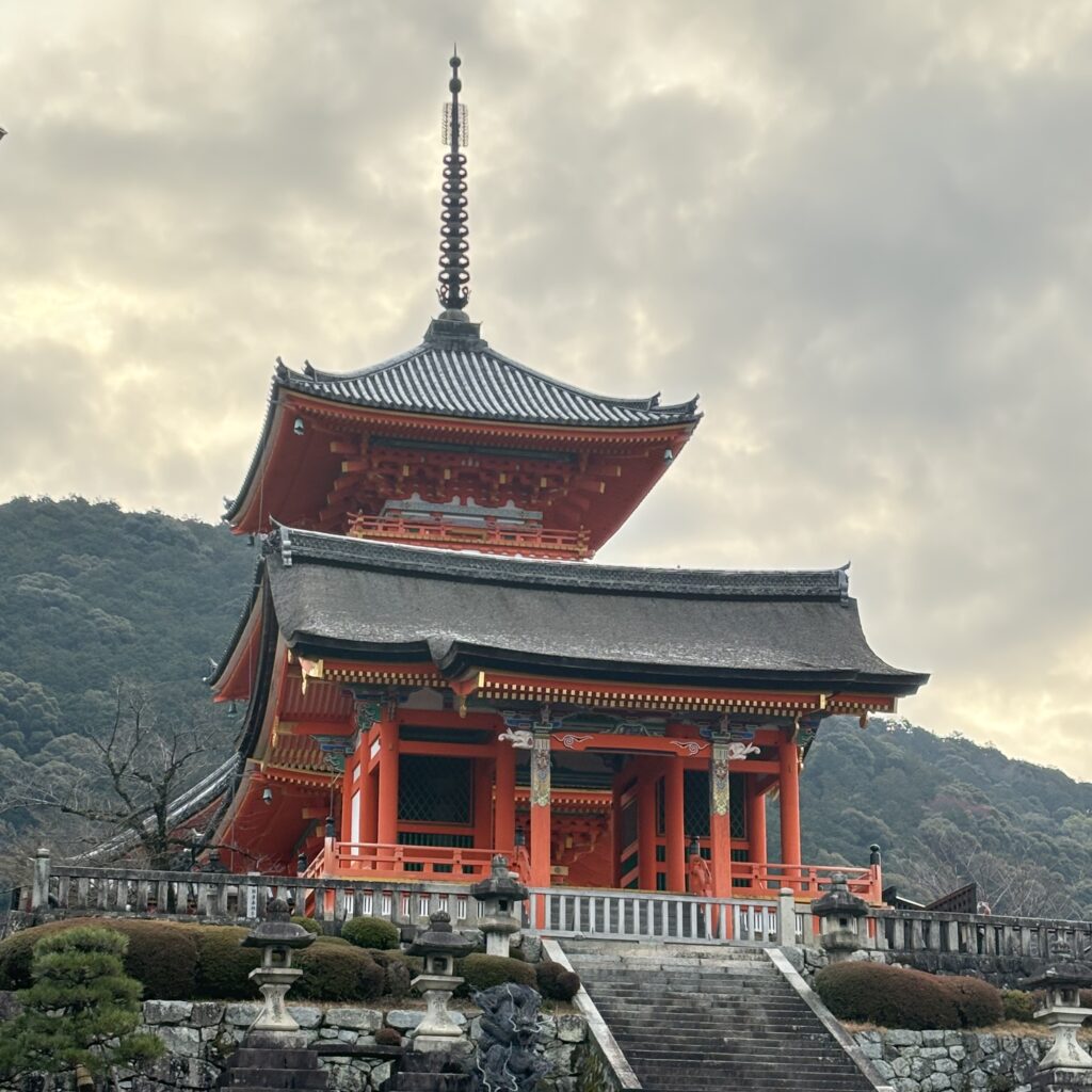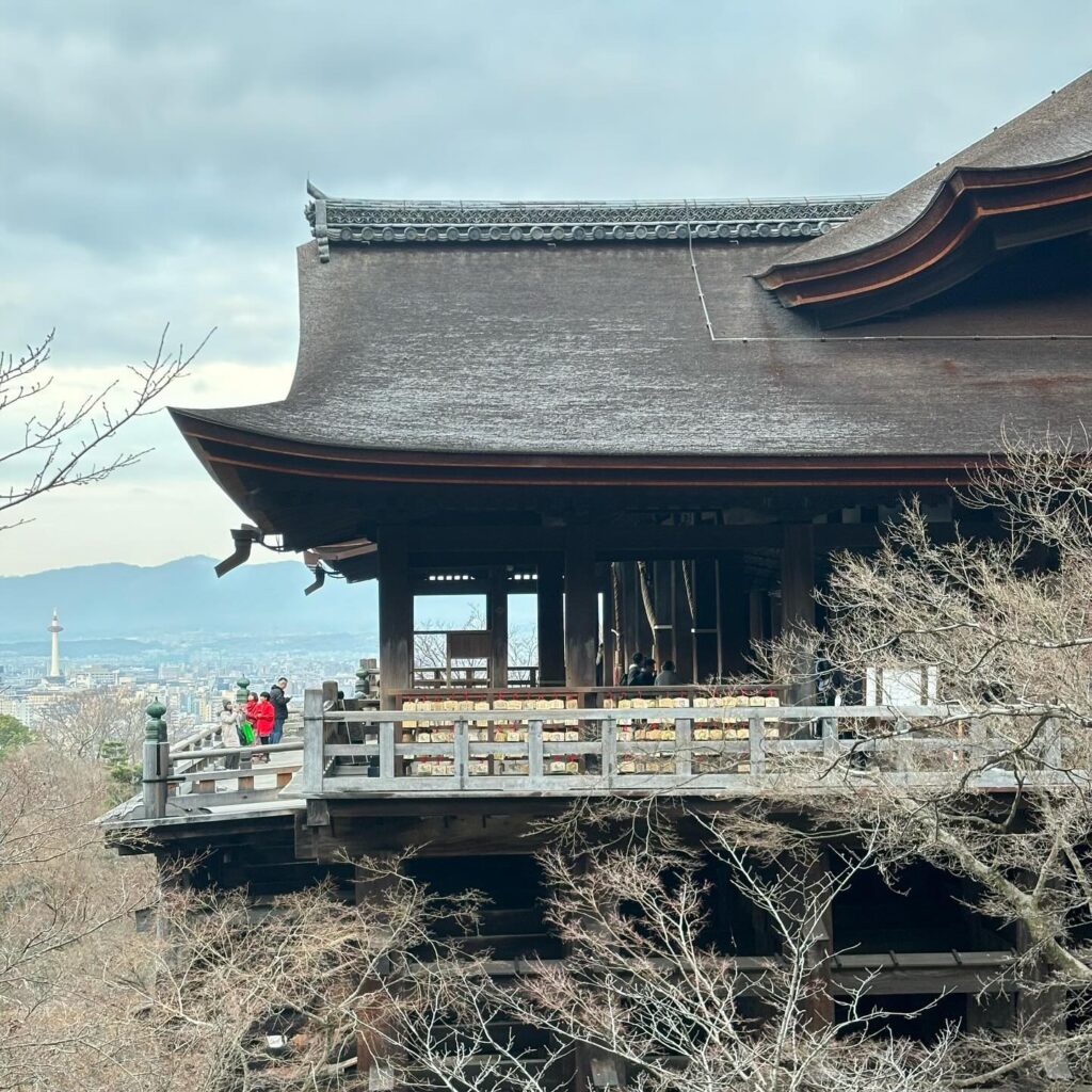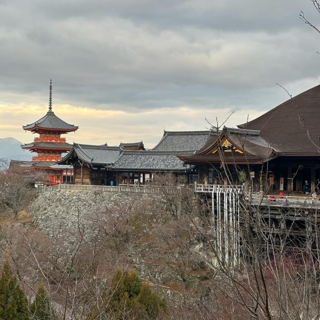 そのまま清水寺方面へ歩を進め、7時ごろに到着。冬の早朝にもかかわらず、すでに観光客の姿があることに驚きました。やはり京都は、世界中から人を惹きつける場所。朝日に照らされる清水の舞台を眺めながら、凛とした時間を過ごしました。