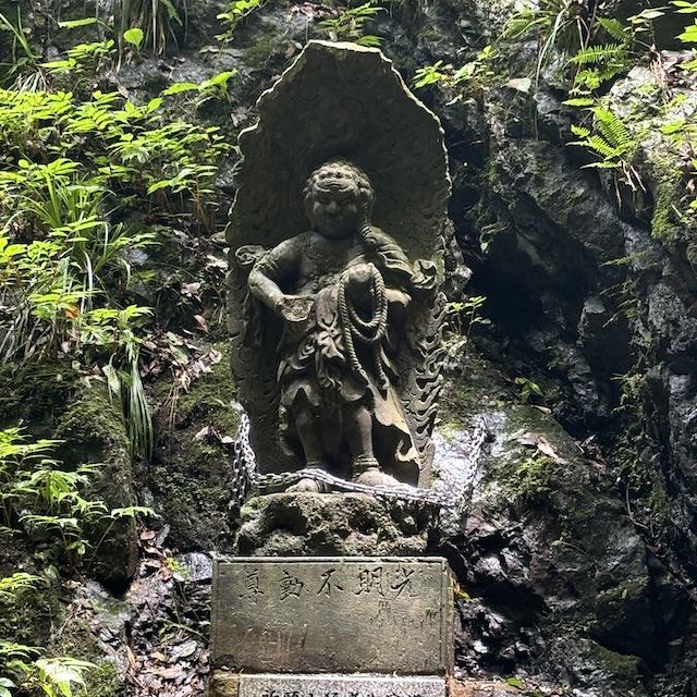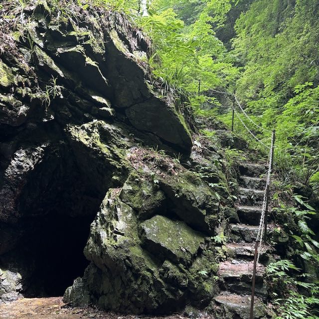 登山の疲れも吹き飛ぶような涼しさに包まれていた金剛の滝。滝の横には小さな洞窟があり、鎖を頼りに通り抜けると、目の前に滝が姿を現します。マイナスイオンたっぷりの癒し空間で、いつまでもその場に留まっていたくなるほどの心地よさでした。