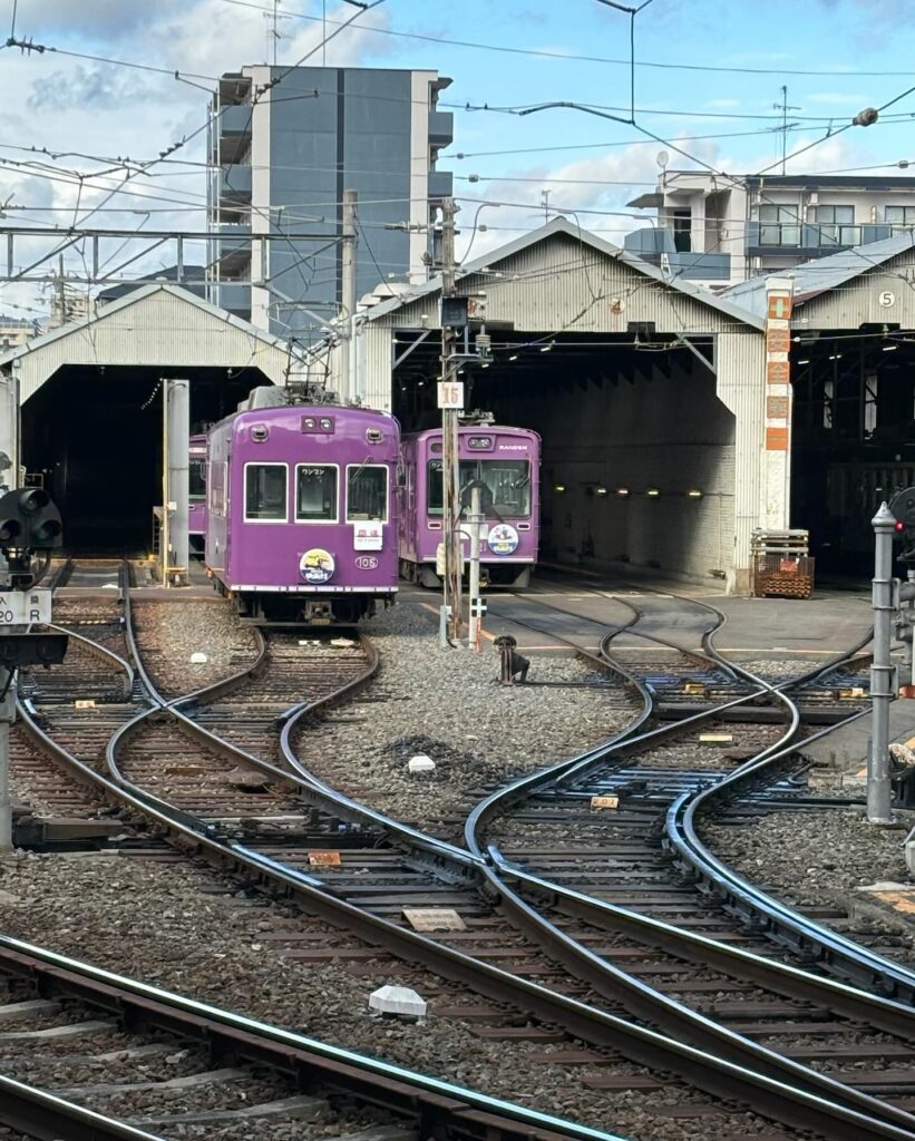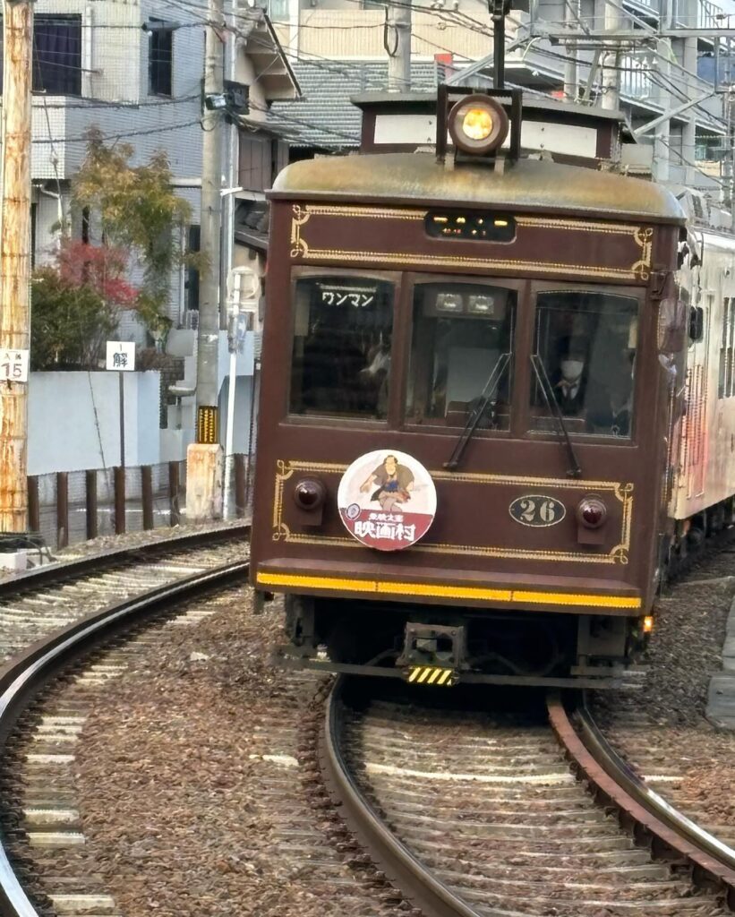 嵐電に乗って向かう途中、クラシカルな車両と路面を走るレトロな風景にワクワクしました。