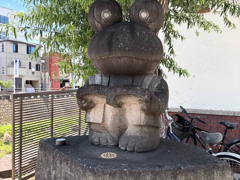 そのまま城下町の雰囲気が残るなわて通りへ。カエルをモチーフにしたお店が並ぶ可愛らしい通りですが、訪れた日は暑さの影響か人通りはまばらでした。