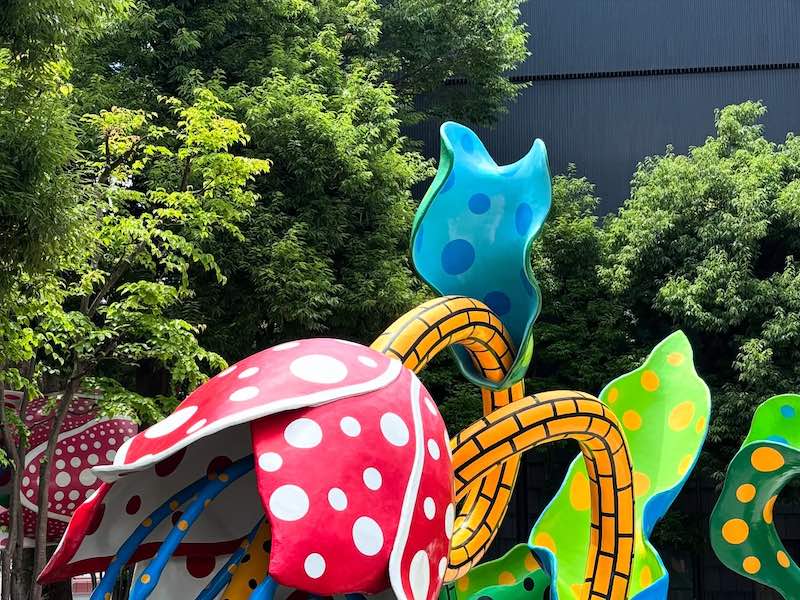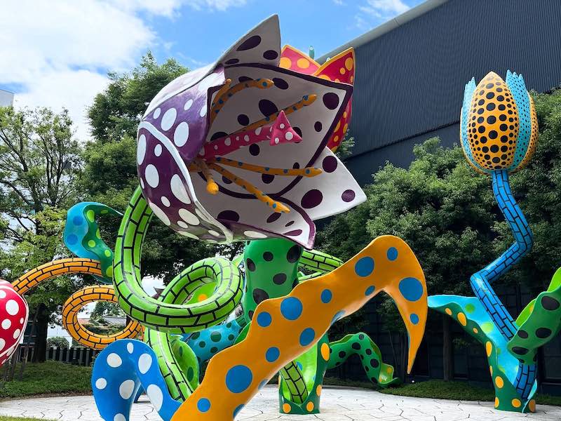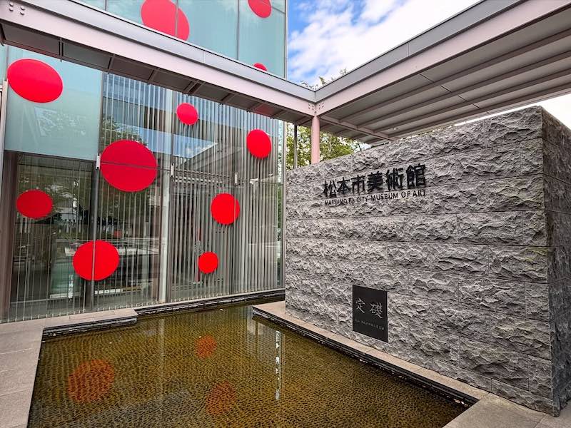 最初に訪れたのは松本市美術館。建物と前庭からすでに草間彌生さんの世界観が広がっており、色彩や造形の力強さに圧倒されます。