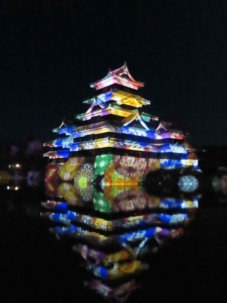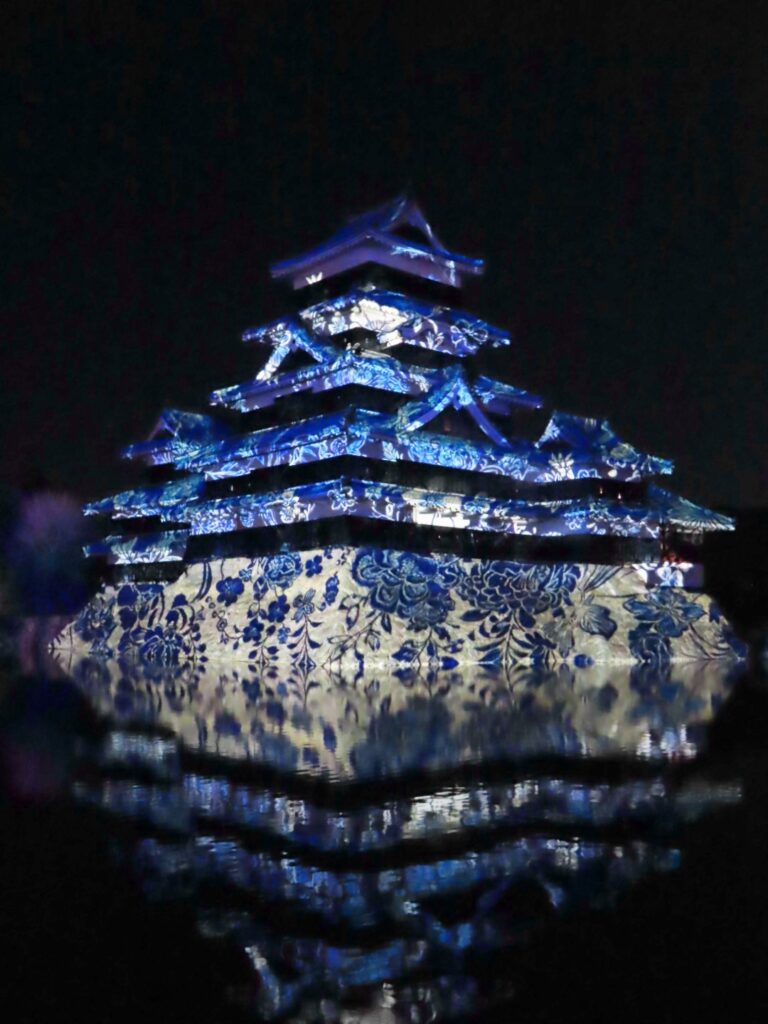お堀の水面にも映像が揺れ、現実と虚構の境目が溶けていくような感覚。 城そのものが巨大なスクリーンになり、音楽とともに空間全体に包み込まれると、時代を越えて旅をしているような、不思議な没入感が生まれます。