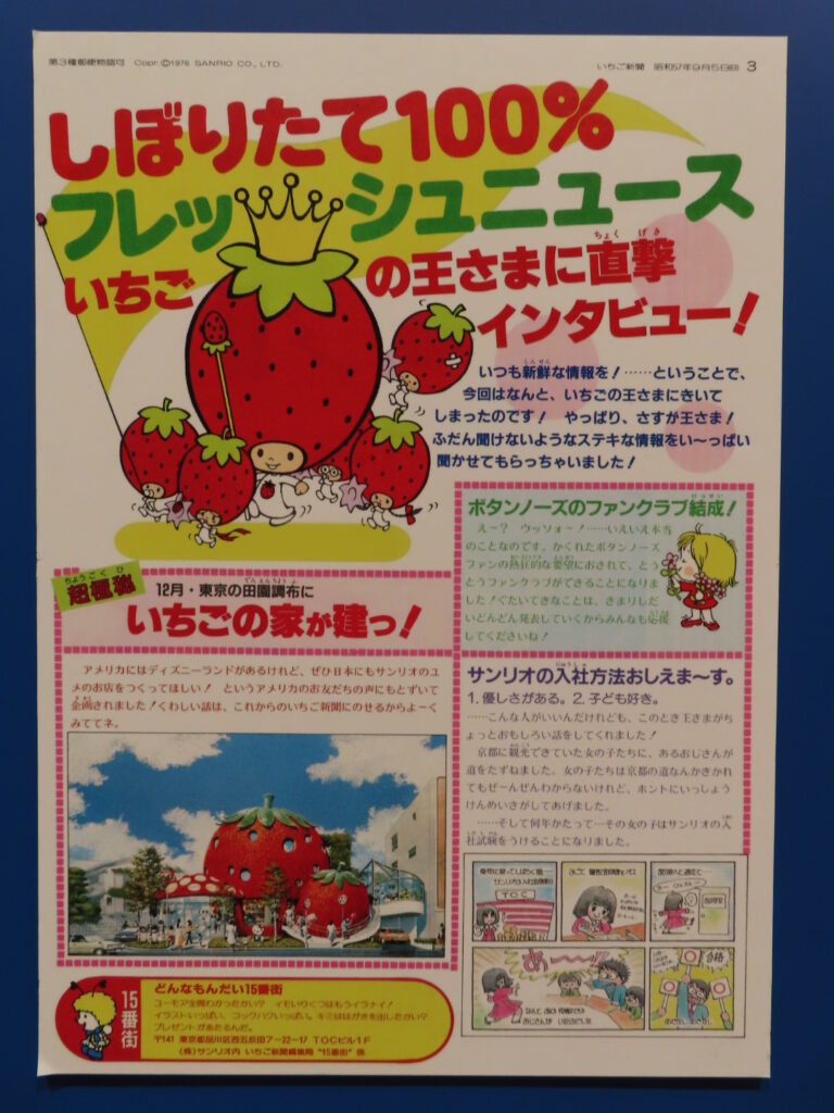 いちご新聞の展示を見たとき、お小遣いを握りしめて一人、あるいは友達とサンリオショップへ通っていた子どもの頃の自分を思い出しました。