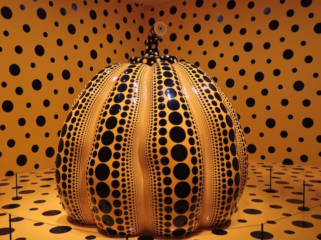 すべて撮影禁止でしたが、最後に展示されていた「大いなる巨大な南瓜」は撮影可能で、一目で草間さんの作品とわかる、遊び心あふれるアートでした。