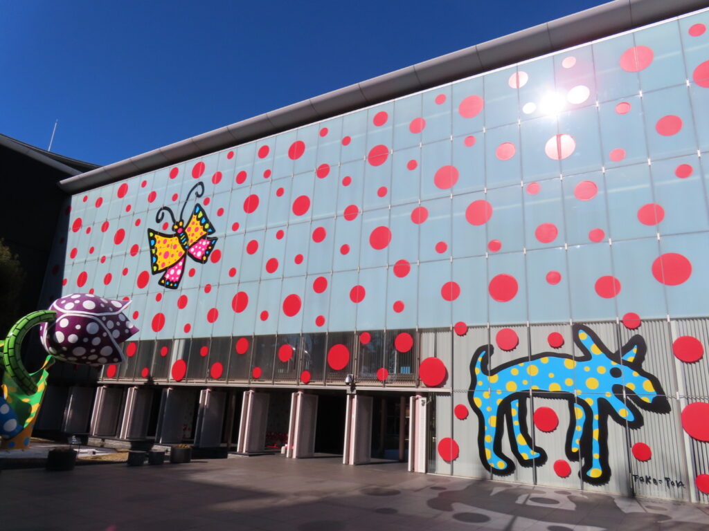 特集展示「草間彌生 魂のおきどころ」として紹介されており、美術館の外観やエントランス前のモニュメントと同様に、館内も草間彌生ワールドが広がっています。