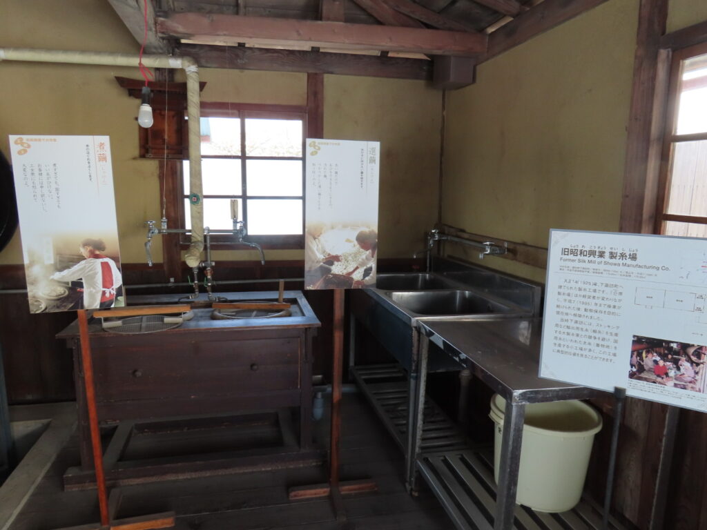 旧昭和興業製糸場は、昭和初期から平成7年まで操業していた製糸工場。 蚕の繭から生糸を取り出す当時の機械がそのまま移築され、 往時の空気を感じられる空間です。