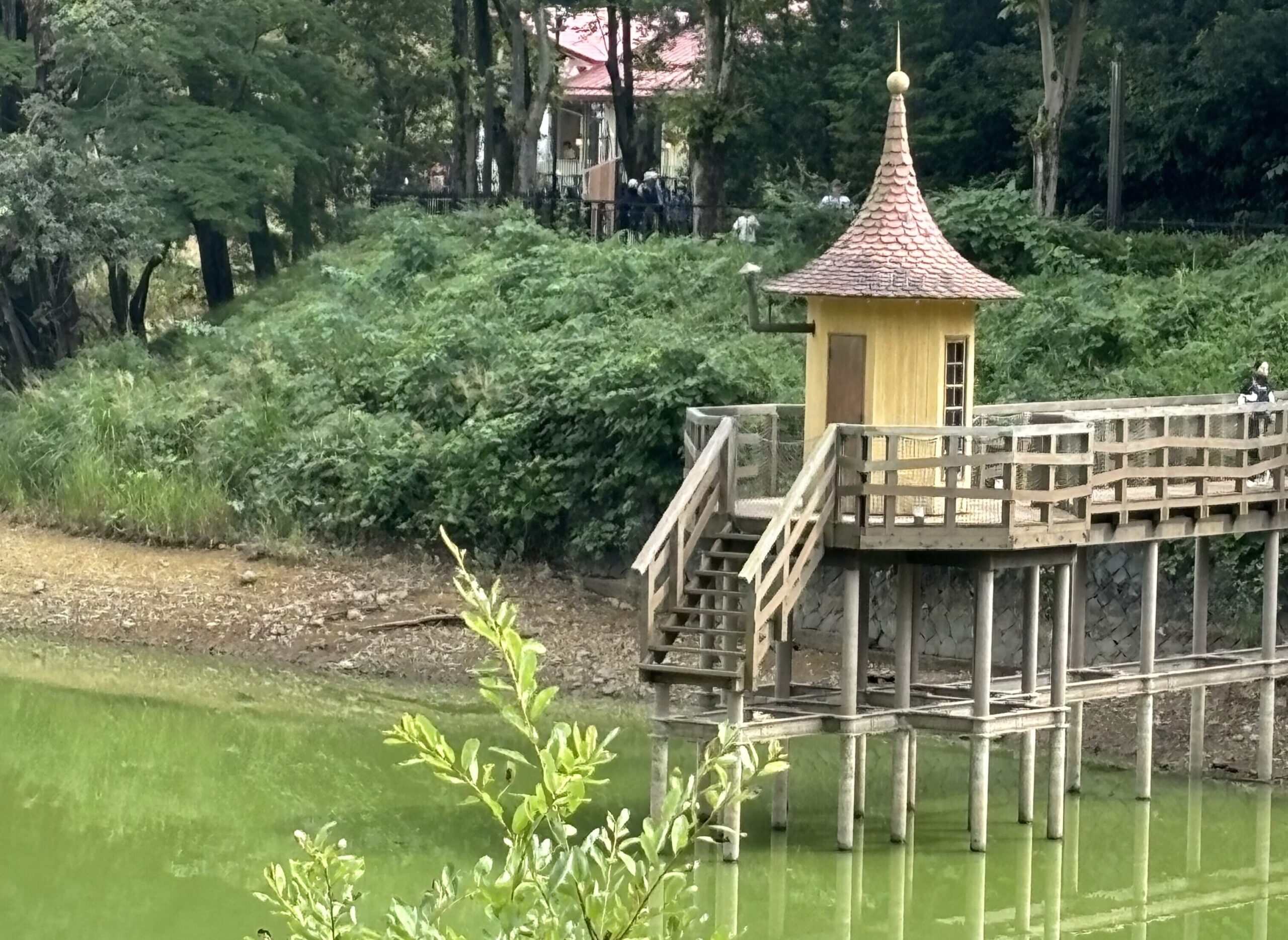 実際に訪れてみると、商業施設の色が思ったより鮮やかで、少し想像と違った部分もありました。それでも自然がいっぱいで、心地よい散策を楽しめました。小学生の遠足バスが何台も停まっていて、賑やかな一面も。