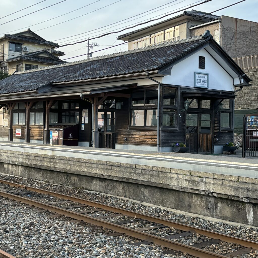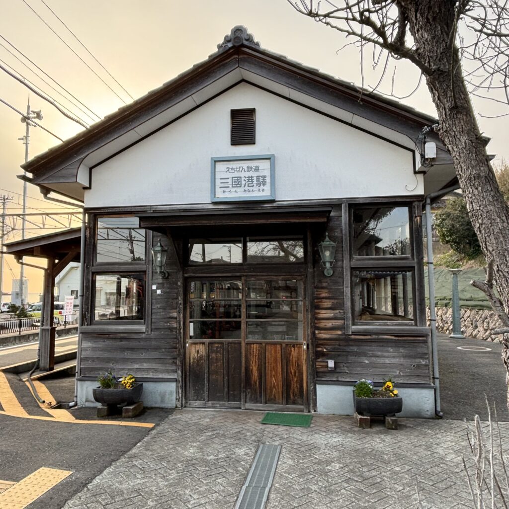 えちぜん鉄道に乗り、終点手前の三国駅で下車して、北前船の時代に栄えた三国の町をのんびり散策しました。伝統的な町家や近代建築が並ぶ通りは、まるで時間が止まったような静けさ。晴れ間の広がる午後、白山を望みながらの小さなひとり旅です。