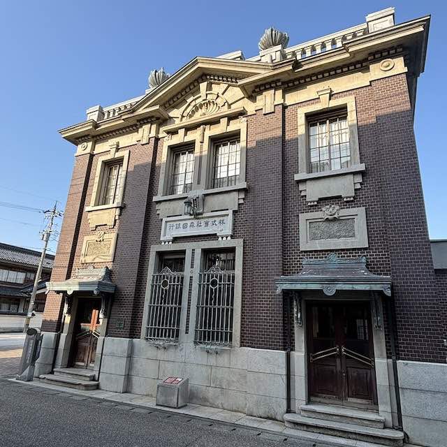「旧森田銀行本店」は、木造の「岸名家」とは趣は異なり、外観だけでも重厚な造りや窓の意匠から当時の空気が感じられ、歩いているだけで時代を行き来しているような感覚になりました。