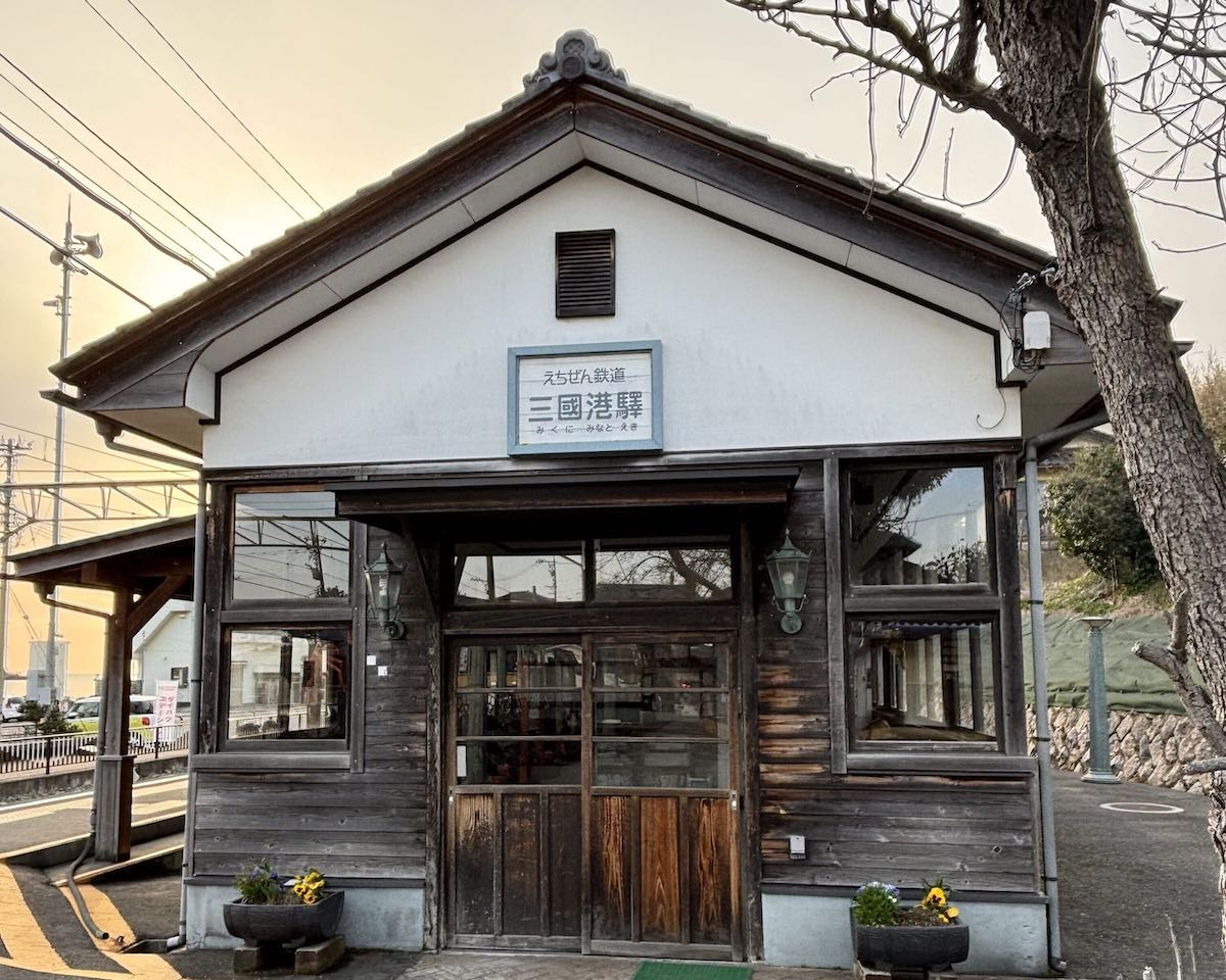 散策の終着点としてたどり着いた三国港駅は、旧駅舎の雰囲気を引き継いで改修された建物で、どこか大正時代に迷い込んだような趣があります。