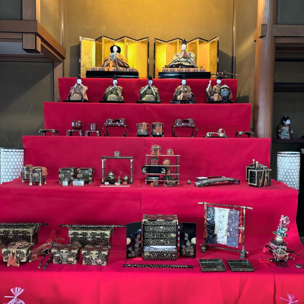 2階には珍しい有識雛や五人楽人も展示されており、時代ごとのお雛様(大正・昭和・平成)や、天皇家ゆかりの貴重な人形も見ることができました。建築の細部に宿るデザインと、お雛様の華やかさが同時に堪能できる場です。