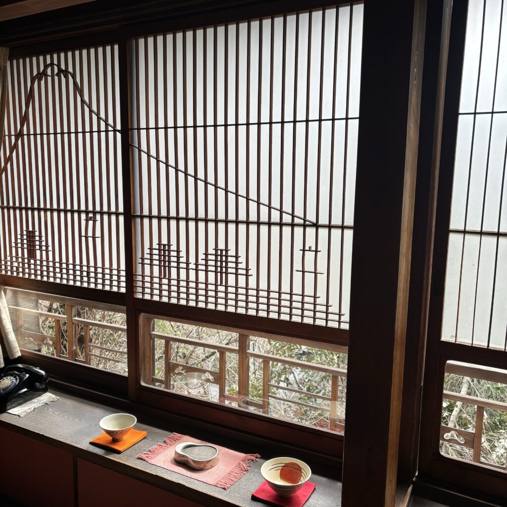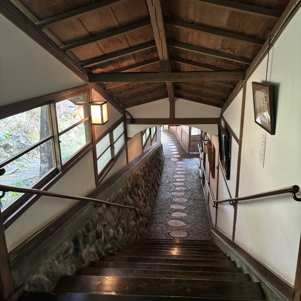 玉堂美術館の余韻を楽しんだあと、駅から徒歩1分の場所にある旅館建物室礼美術館 河鹿園へ。元・割烹旅館の建物を活用したこの施設は、国登録有形文化財に指定されています。