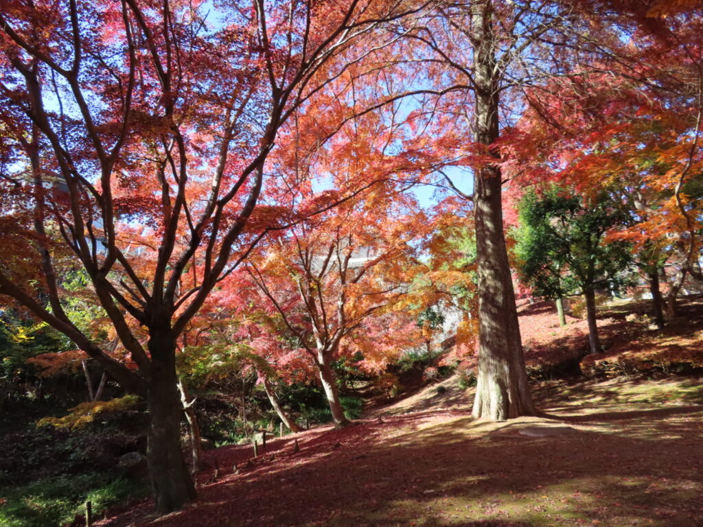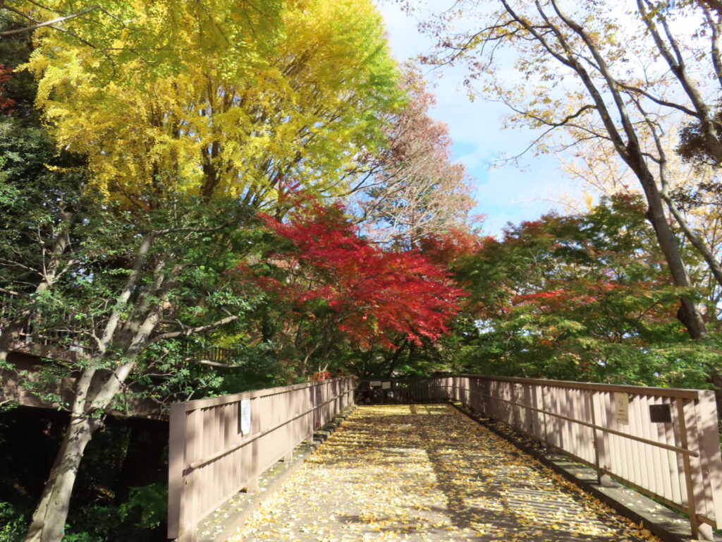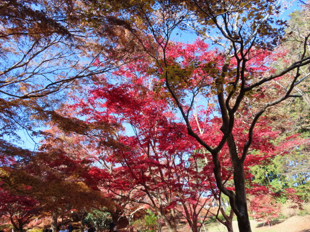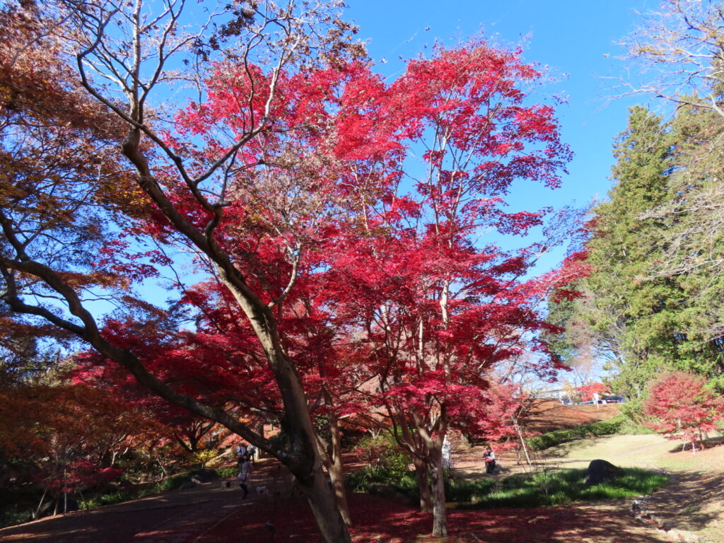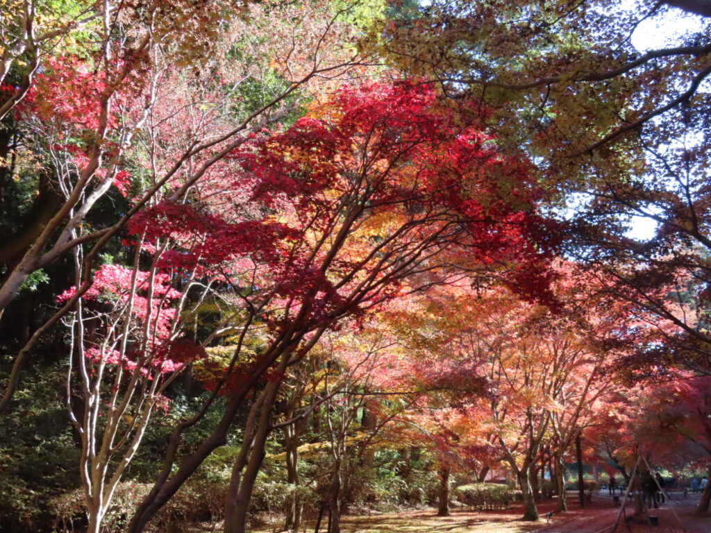 もみじ谷への道は線路をまたいで進むのですが、わかりづらく、スタッフの方に何度か道を尋ねながら辿り着きました。広さは大きくありませんが、紅葉はちょうど見頃で、深い赤が谷を染めていました。ここで彼女とはお別れし、私はその後も3周ほど散策してしまったほど魅力的な場所でした。