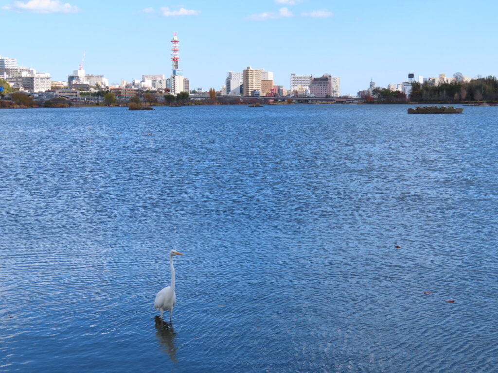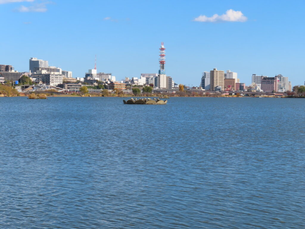水戸芸術館のシンボルタワーが千波湖から見えました
