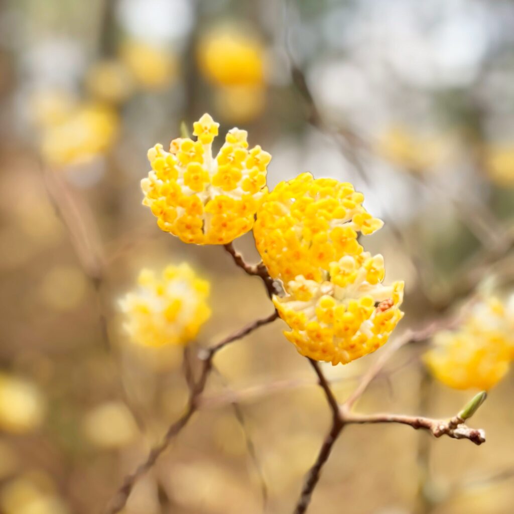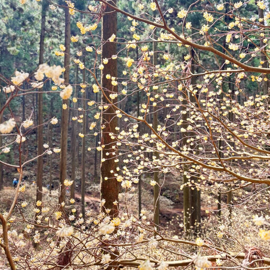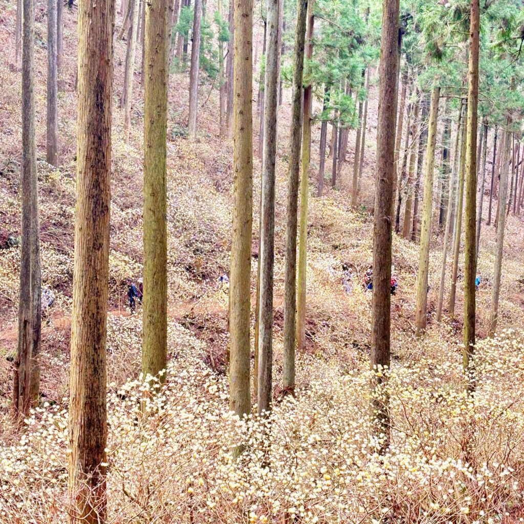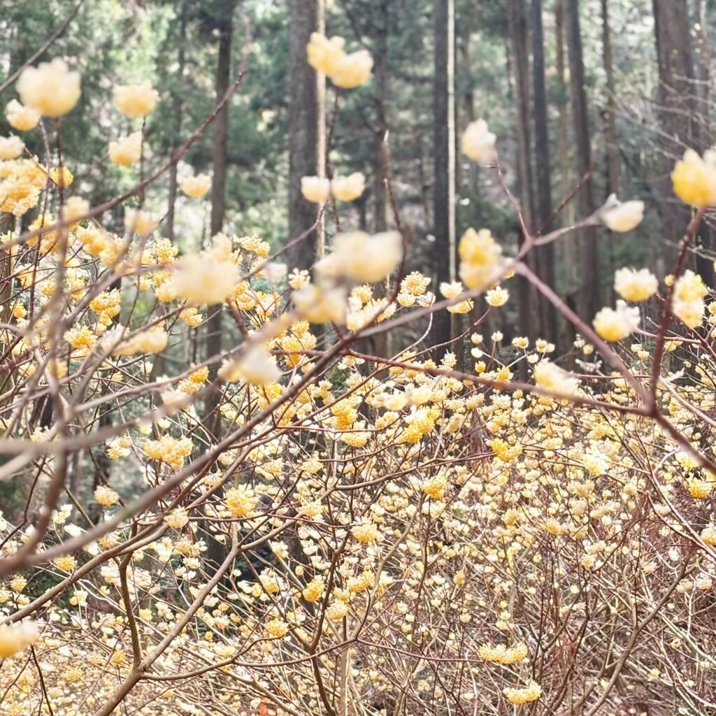 例年より開花が遅れていたものの、斜面一面に咲くミツマタの花のスケールと美しさは圧巻。杉林に差し込む光が少ない日でしたが、それでも目にした光景はまるで絵画のようで、思わずカメラが欲しくなるほどでした。