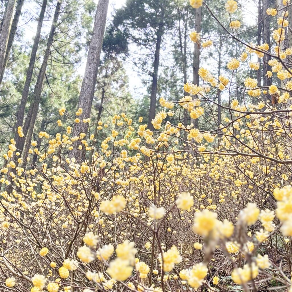 群生地内はミツマタだらけのトンネルのような道が続きます。携帯で撮影した写真ですが、どの角度も黄色の花に包まれる幻想的な空間。人が写り込まないように工夫しながら撮影したため、雰囲気だけでも感じていただければ幸いです。
