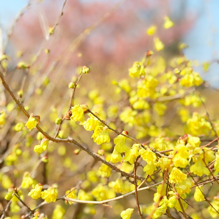 訪問時は見頃を少し過ぎていたものの、桜のトンネルや梅・ヒュウガミズキなど春の花々に包まれ、心地よい散策の時間に。