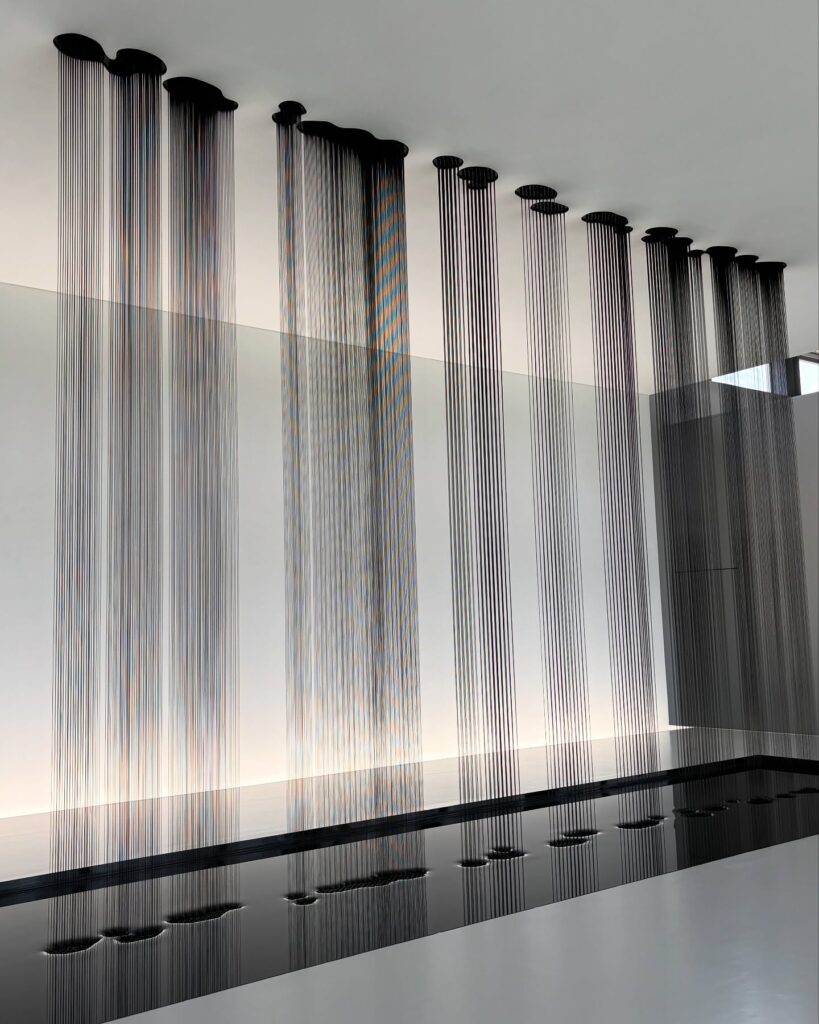 広々とした空間に配置された作品は、自然光の入り方や水盤の反射など、さまざまな要素が重なって完成する“体験型アート”。