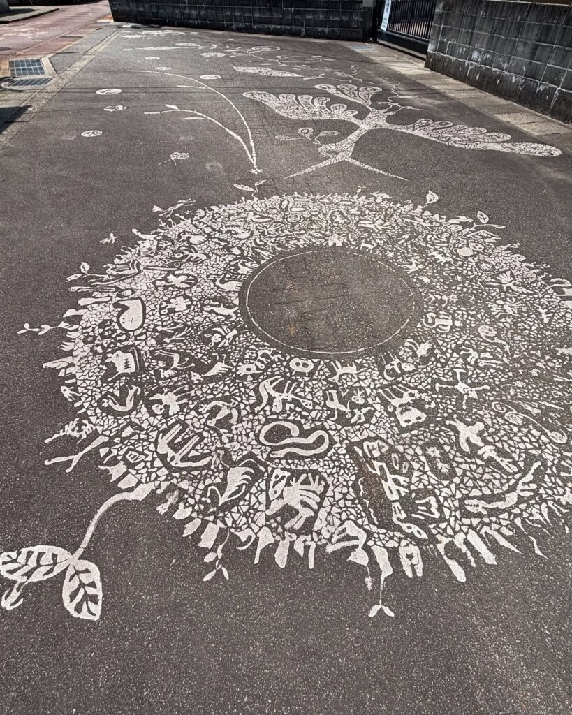 美術館への道案内も途中から道路に描かれたイラストとなり、照りつける日差しの中でも思わず笑顔に。暑い日でしたが、道路に描かれたアートに癒されながら歩きました。