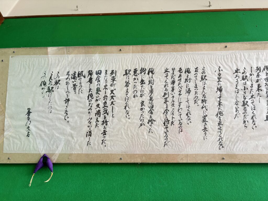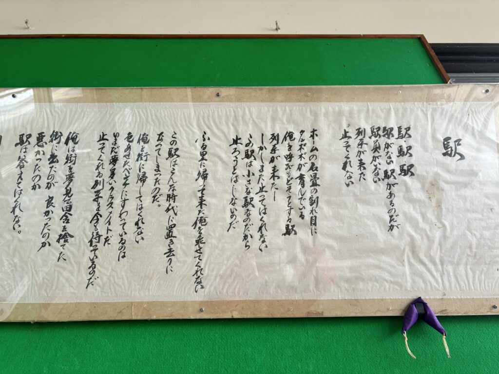 帰り道、最寄りの吉川駅は、小さな無人駅で目に留まったのは「駅」という題の詩。
