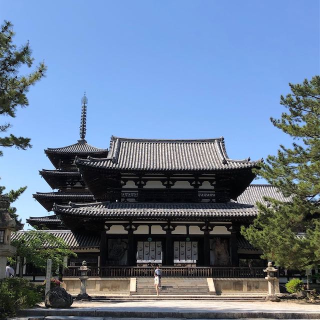 奈良公園周辺の賑わいをあとにし、静かな時間を求めて奈良市内からバスに揺られて約1時間、法隆寺へ向かいました。法隆寺は世界遺産にも登録されている歴史ある寺院ですが、市内中心部に比べると落ち着いた雰囲気が広がっています。