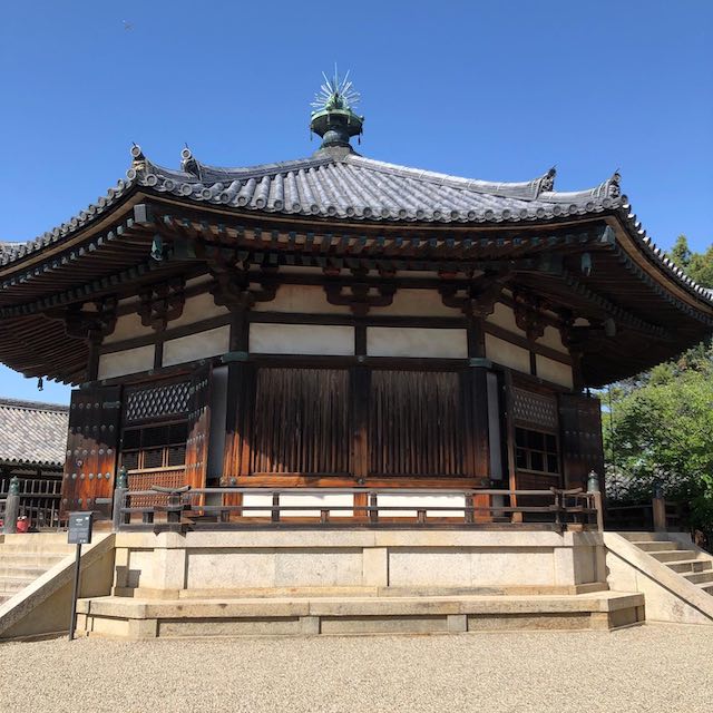 続いて訪れた中宮寺では、お札にも描かれている夢殿を拝観。堂内の厳かな空気と美しい観音像に、自然と背筋が伸びるような思いでした。