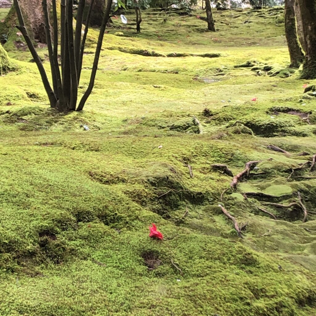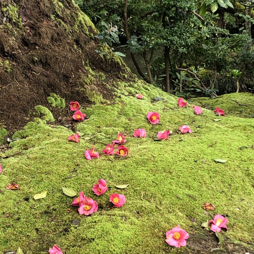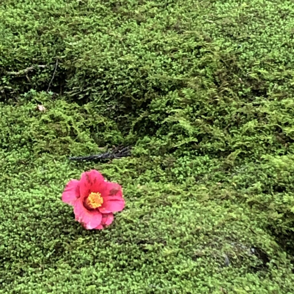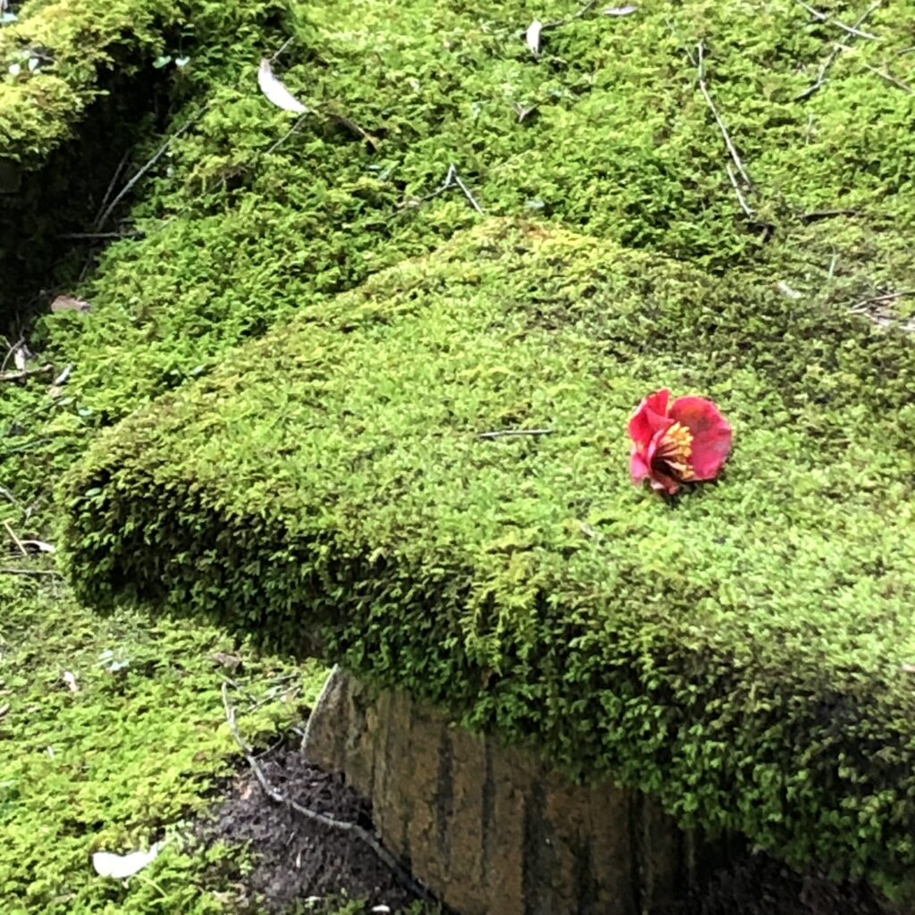 けれど、私の目を引いたのはその奇岩よりも、境内に広がる苔の絨毯と、そこに落ちた椿の花の美しいコントラスト。赤と緑が織りなす静かな世界に、思わず足を止めて見入ってしまいました。