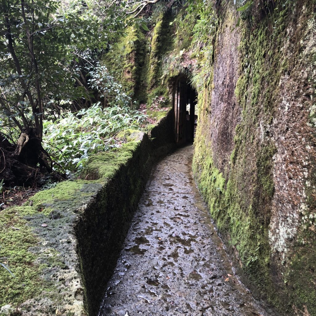 奇岩の景観で知られる境内を歩きながら、苔むした石段や落椿の美しさに心奪われたひとり旅の記録です。