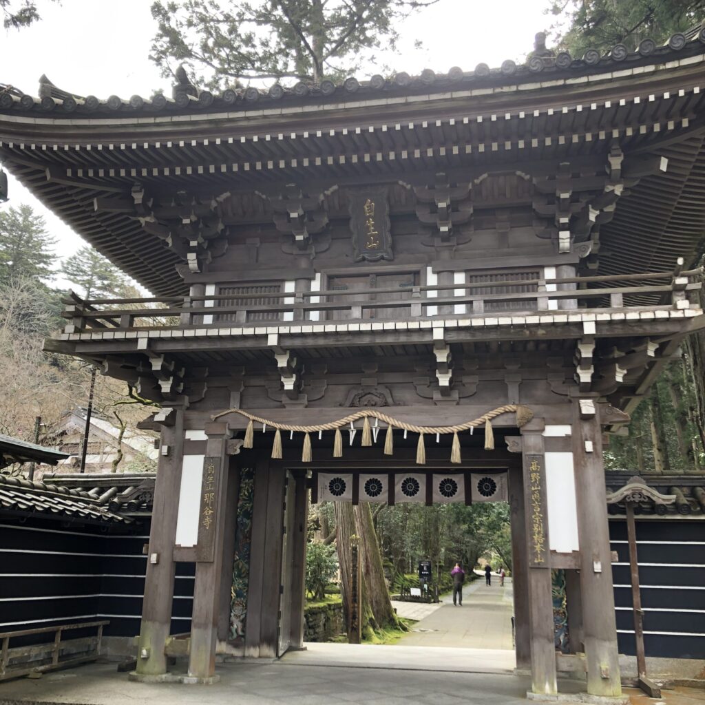 金沢駅からローカル電車で粟津駅まで向かい、そこからは1日に3本しかないローカルバスに乗り継ぎます。バス停から少し歩くと、那谷寺の立派な山門が姿を現しました。昔と変わらず静かな空気が流れ、訪れる人の少ない午前の境内には、ゆっくりとした時間が流れていました。