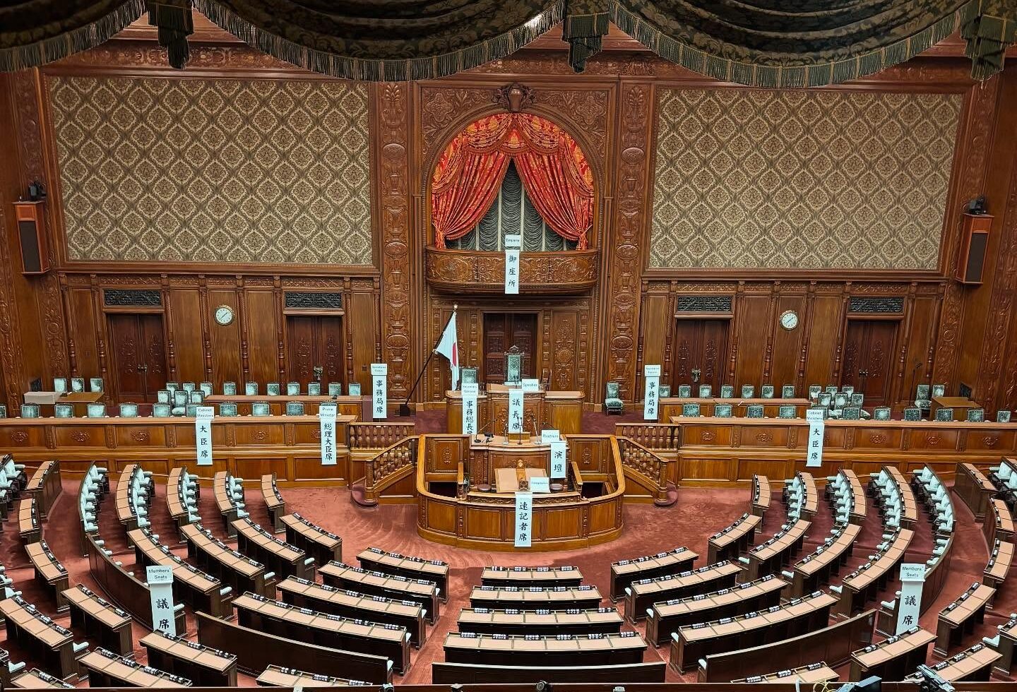 国会議事堂では、写真撮影ができる場所は限られていましたが、建物の中は歴史を感じる装飾や調度品に満ちていました。アメリカやイギリス、そして日本各地から集められた素材や工芸品が随所に使われており、まさに「日本の政治の中心」と呼ぶにふさわしい重厚な空間です。案内の方の説明を聞きながら歩くたびに、国の歴史や政治の重みを肌で感じました。