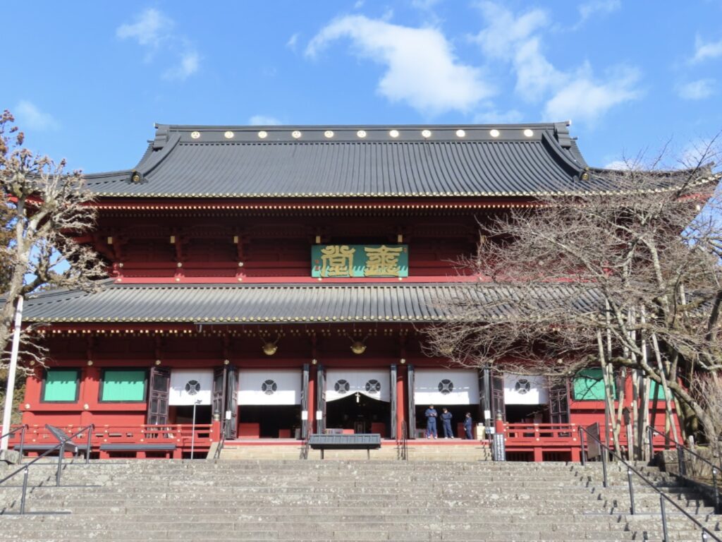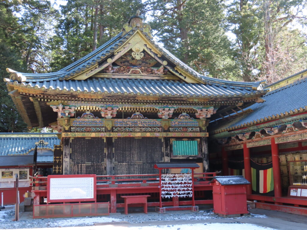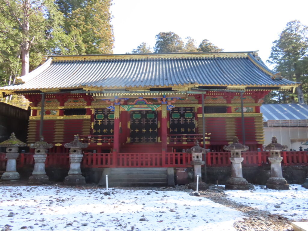 足元に積雪はないものの、日陰には凍った箇所もあり、慎重に歩を進めます。空気はひんやりと澄み、自然と背筋が伸びる感覚。 やがて視界に入ってきたのが、輪王寺の大護摩堂です。日光山内最大の木造建築だけあり、その姿は圧巻でした。