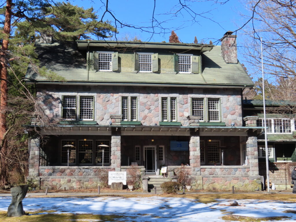 散策の締めくくりは、明治時代に建てられた石造りの洋館レストラン「明治の館」。 蓄音機を日本に初めて紹介したF.W.ホーンの別荘として建てられた建物です。