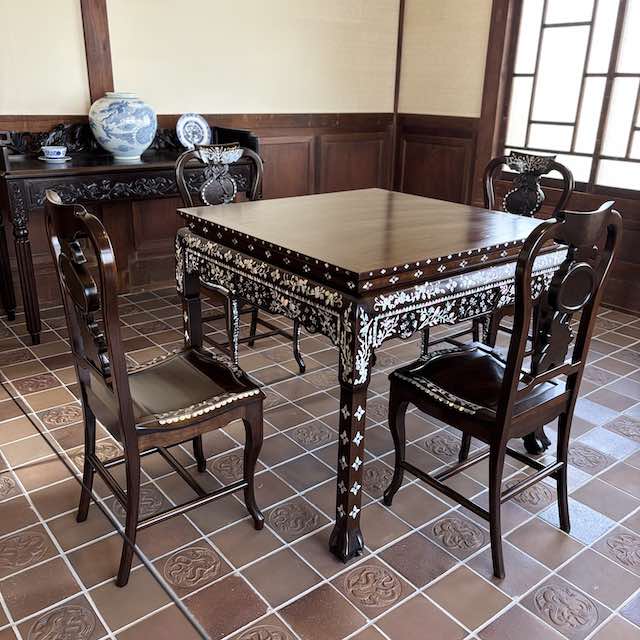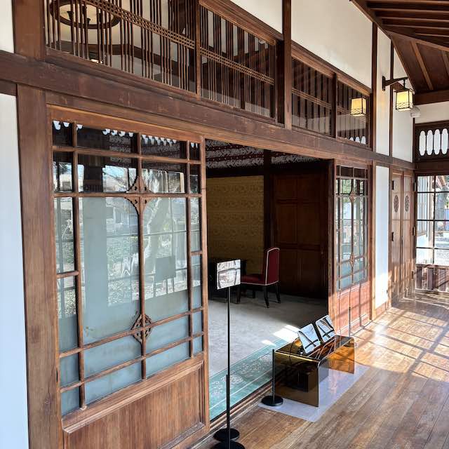 館内には当時としては珍しい水洗トイレや、絵柄入りの瓦敷き、東洋趣味の照明、美しい貝細工のテーブルなど見どころが多く、ガイドの方の説明を聞きながら昭和初期の文化や美意識に触れる時間を過ごしました。