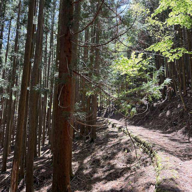舗装路から林道へと進んでいくと、周囲を囲む木々はいっそう深くなり、鳥の声と風の音だけが響く静かな空間へと変わっていきます。
