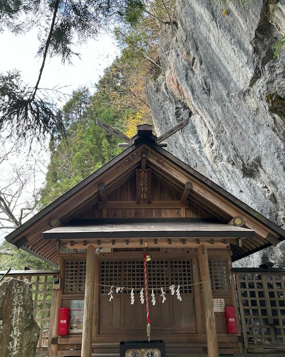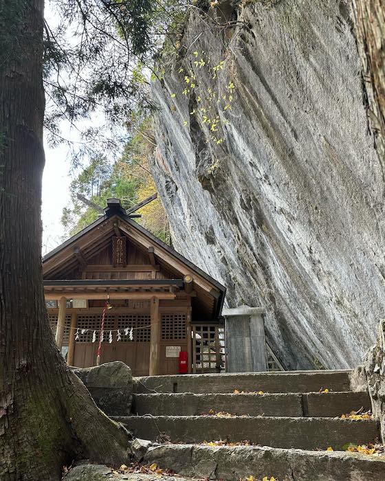 静かな山の中で、岩と木々に囲まれた神社を前にすると、自然の力と人の信仰が溶け合っているように感じました。