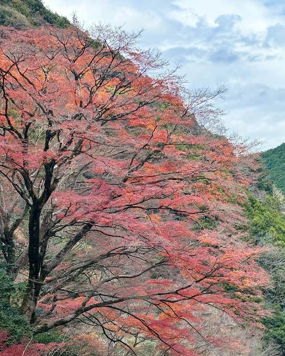 この日は晴天で、紅葉の見頃は過ぎていたものの、山肌にはまだ色づいた木々が残り、晩秋らしい景色が広がっていました。
