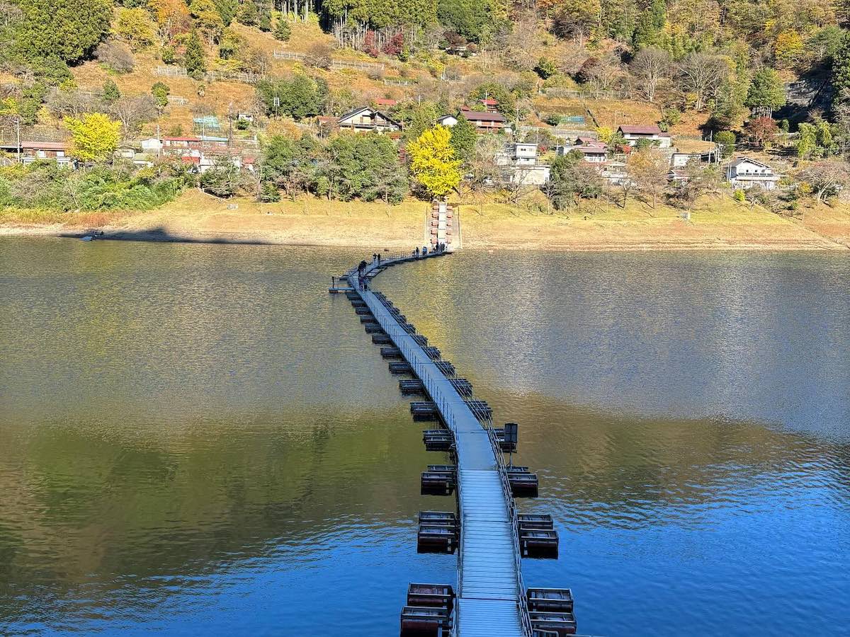 当初目当てだった麦山浮橋は前日の強風の影響で通行止めとなっていましたが、代わりに訪れた留浦(とずら)浮橋で、湖面を歩くような不思議な感覚を味わうことができました。