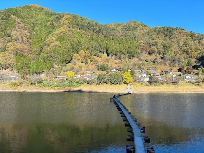 麦山浮橋より距離は短めですが、そのぶん静かな里山風景に溶け込む姿が印象的でした。