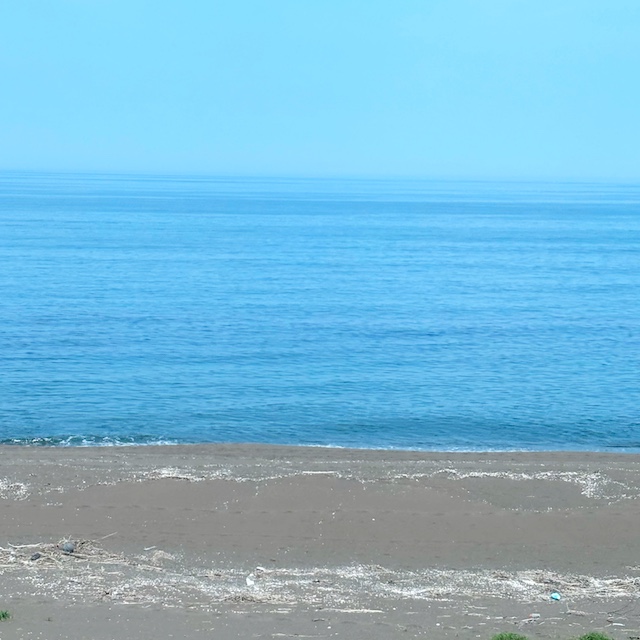 行きと帰りのあいだに見た景色と波の音が、電車に揺られながら、心の中で静かにゆらめいていました。